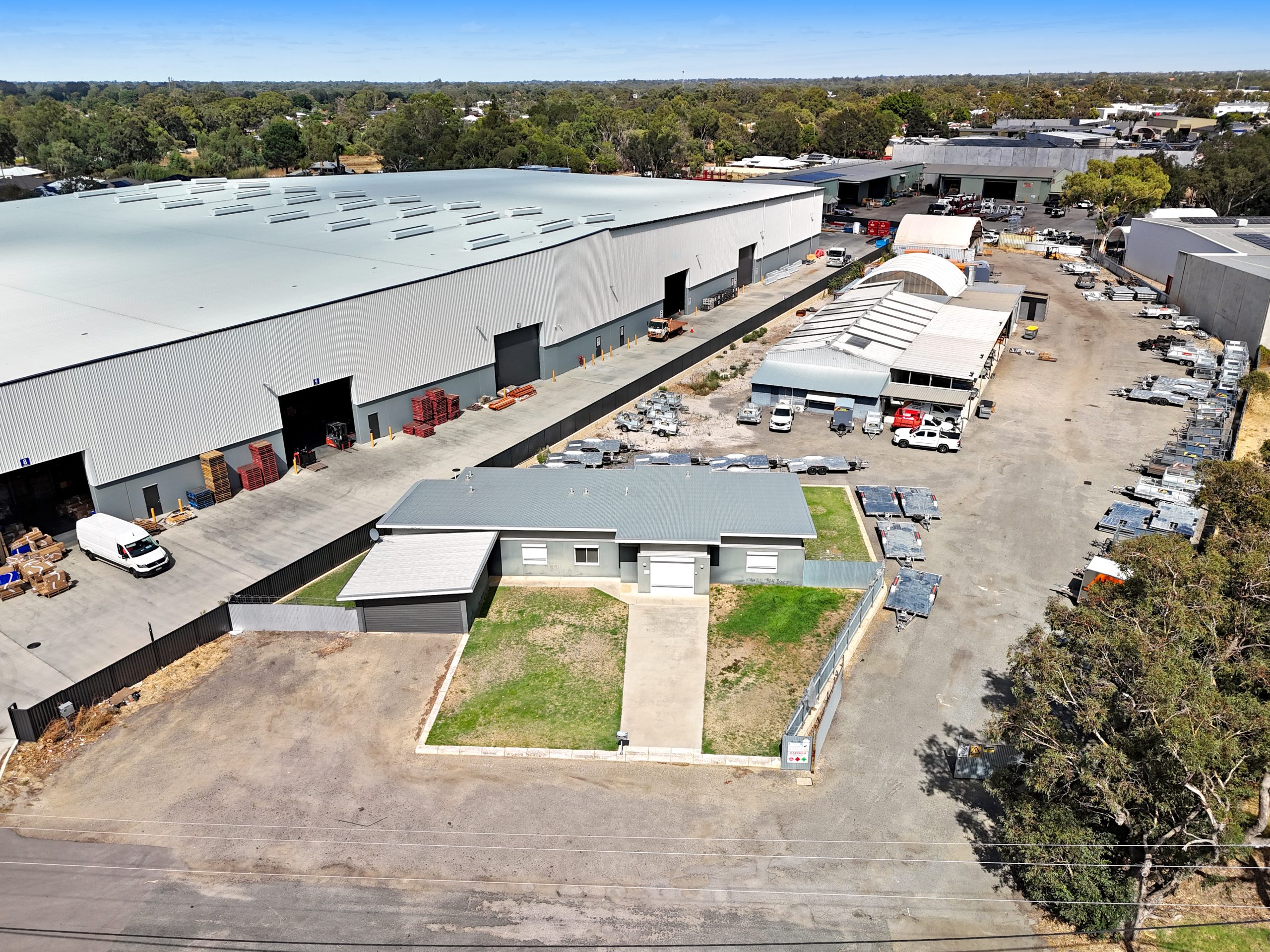 This property benefits from expansive drained hardstand, complemented by two domes and a 1,110 sqm* standalone workshop, which includes a small office component and staff lunch amenities. The front office/residence is well presented, neat and tidy, featuring kitchen, shower, toilet, laundry facilities, with a reception and multiple rooms along with a secure and separate one-bedroom, one-bathroom ancillary dwelling.